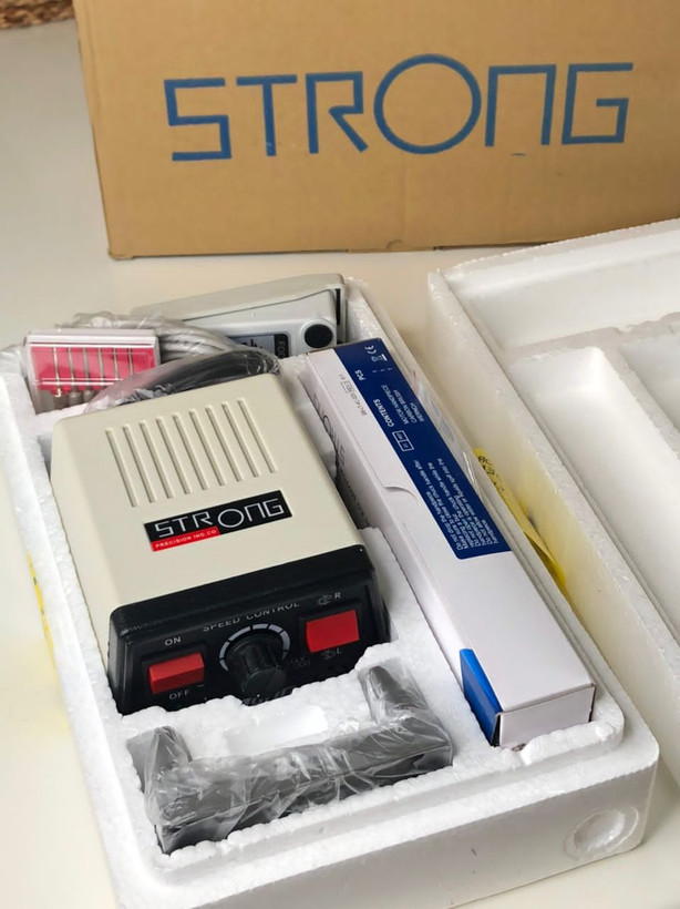 سوهان برقی ناخن استرانگ ۲۰۴ Saeshin Strong 204 Nail Drill Machineیکی از محبوب ترین دستگاه های سوهان برقی نزد هنرمندان ناخن می باشد و یکی از بهترین موتورهای سوهان برقی را دارد. دسته اصلی این دستگاه دارای دور موتور ۳۵۰۰۰ در دقیقه می باشد که هنگام استفاده از آن لرزش و صدای کمی دارد. از این محصول می توان هم با پدال پا و هم بصورت دستی استفاده کرد
