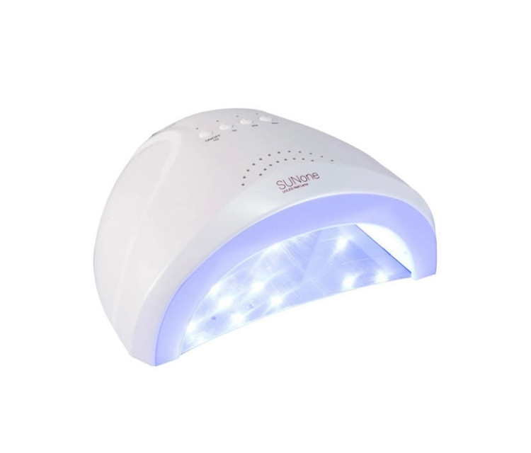دستگاه ال ای دی یو وی سان وان دارای شکل ظاهری بسیار زیبایی بوده و از کیفیت ساخت بالایی نیز برخوردار است، میتوان گفت که SUN ONE زیبایی خاصی به میز کار شما خواهد بخشید. در پشت دستگاه سوگت اتصال کابل برق مشاهده می شود. دستگاه دارای 30 عدد لامپ ترکیبی یو وی ال ای دی بوده که قدرت 48 وات را فراهم می نماید. روی دستگاه 4 دکمه تایمر 5/30/60/99 ثانیه تعبیه شده که در ادامه به کارکرد آن ها خواهیم پرداخت، در دستگاه یو وی ال ای دی ناخن SUN ONE اثری از صفحه نمایش نیست و این را میتوان تنها نقطه ضعف این دستگاه دانست
